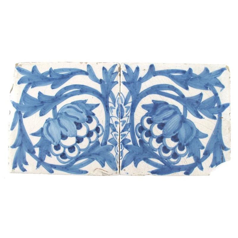 'Artichoke' a pair of tin-glazed tiles, probably retailed by Morris & Co after a design by William Morris or William De Morgan, painted in blue, unsigned, losses 13.5cm. square