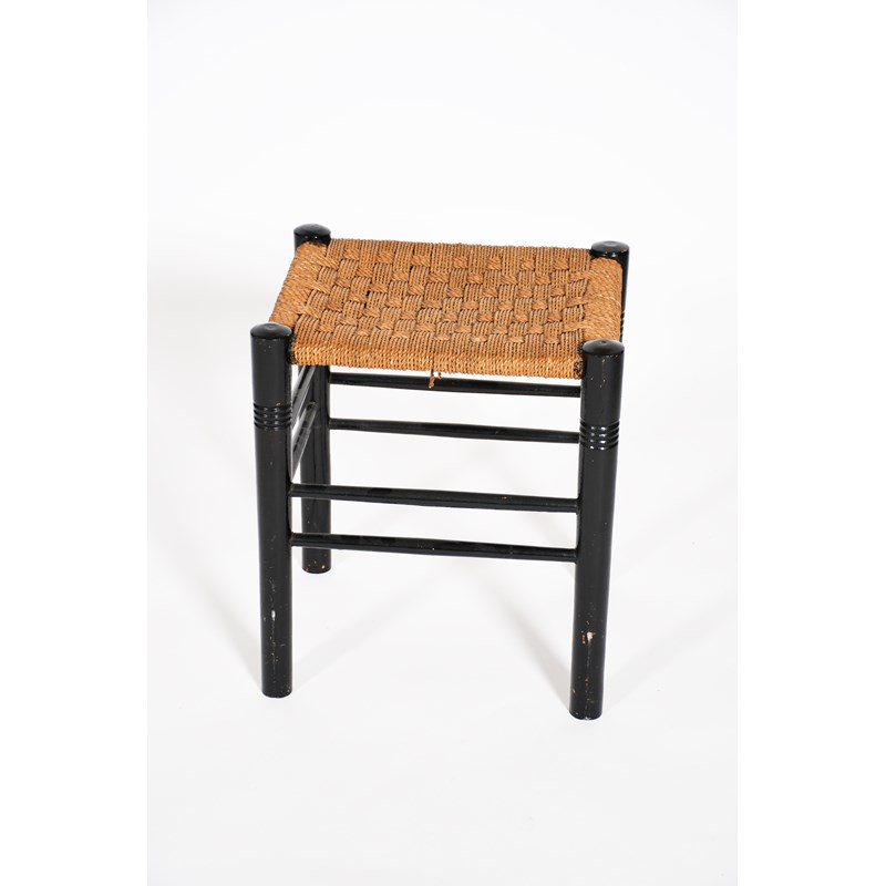 A small ebonised wood stool possibly retailed by Liberty & Co