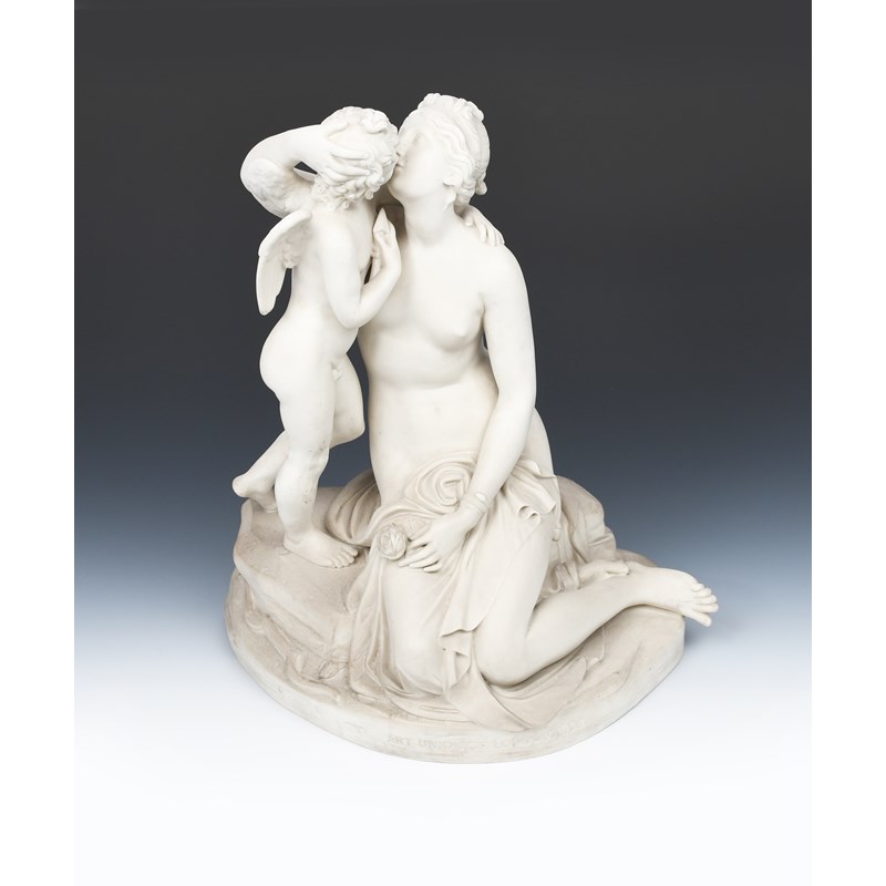 'Cupid and Psyche' a J Ridgway Bates & Co Art Union of London Parian Ware sculpture after J Wilson RA, dated 1858, impressed Art Union of London 1858 to base, 49cm. high