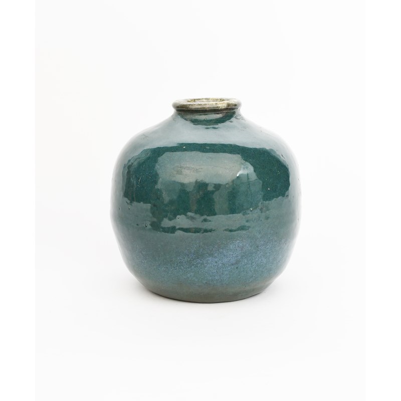 a stoneware vase dated 1912, shouldered ovoid form with collar rim, covered with a blue mottled glaze, incised monogram and date mark, 18.5cm. high