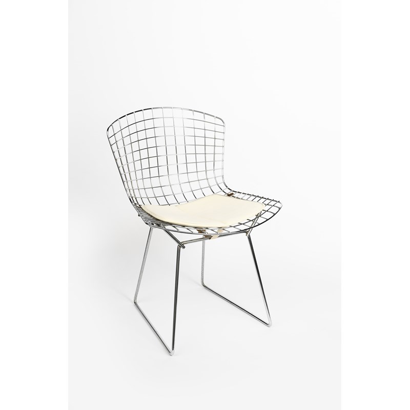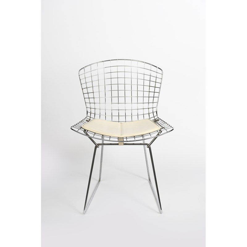 A chromed metal chair designed by Harry Bertoia, model no 420C, with white leather pad seat, and a Modernist armchair unsigned, 74cm. high (2)