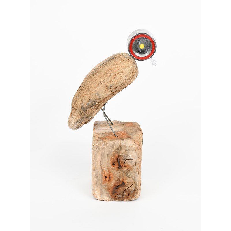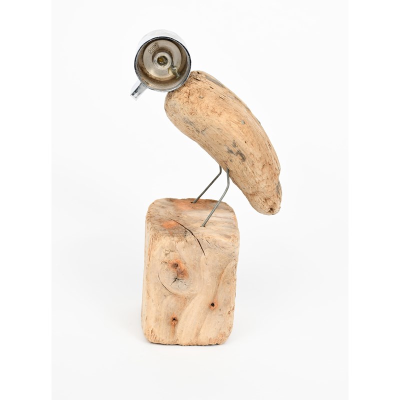 driftwood, wire and metal tap