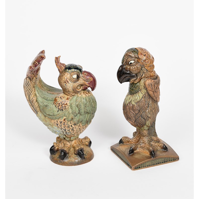 The Barrister a Burslem Pottery bird jar and cover by Andrew Hull, 26-29th May 2005, modelled standing with portly tummy, head bowed in thought, glazed in colours, and a bird by Andrew Hull, 2005, impressed and incised marks, 25cm. high (3)