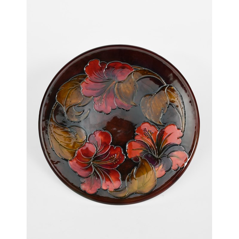 'Flambe Hibiscus' a Moorcroft Pottery charger designed by Walter Moorcroft