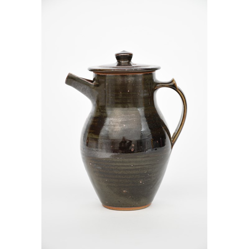 stoneware coffee pot and cover covered with a tenmoku glaze to the foot,