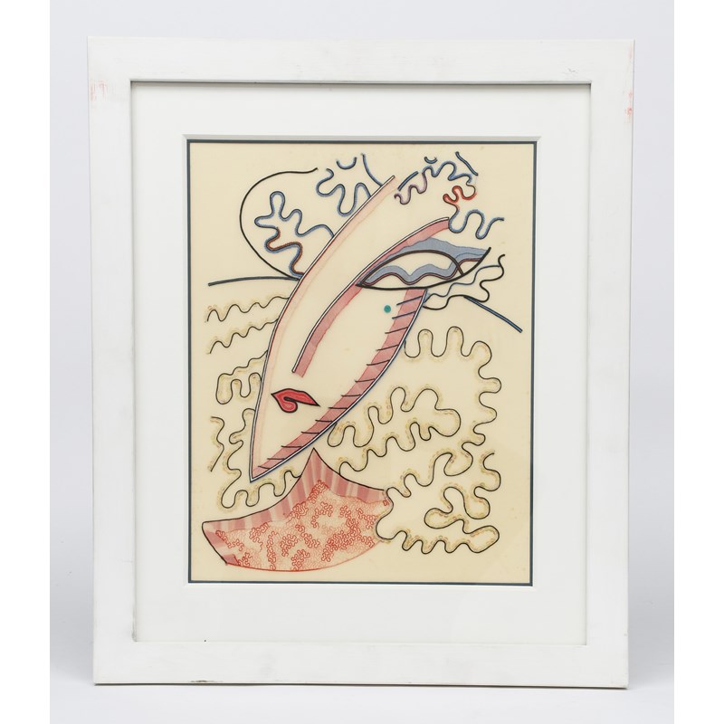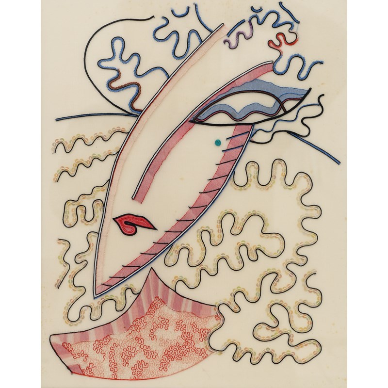 embroidered silk with sequins, framed