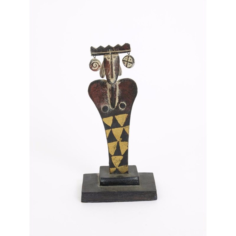Standing Queen, a stoneware figure on stepped base, painted in colours, highlighted in gilt impressed seal mark, painted signature and title 28cm. high