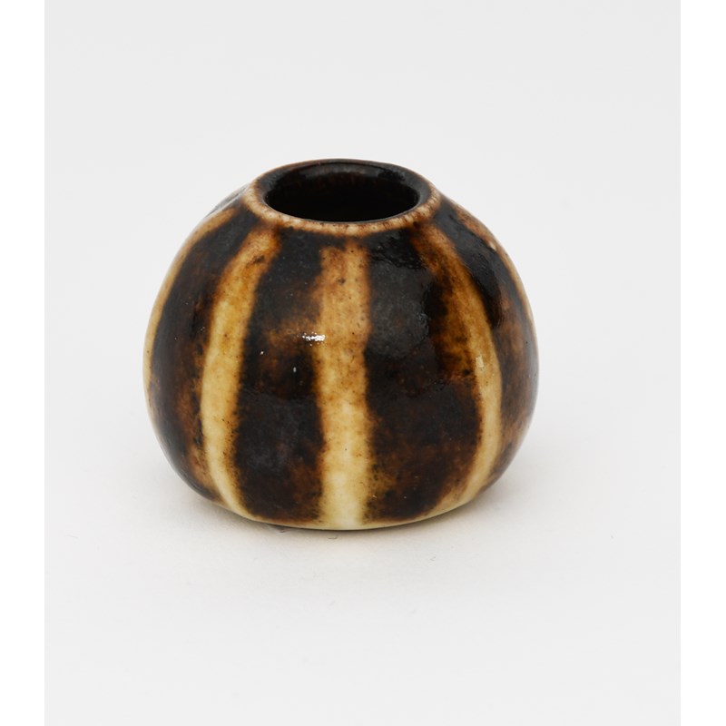A Martin Brothers stoneware miniature vase by Edwin and Walter Martin, dated 1907, sea urchin form, with modelled vertical ribs, glazed brown, incised 11-07 Martin Bros London, 3.5cm. high