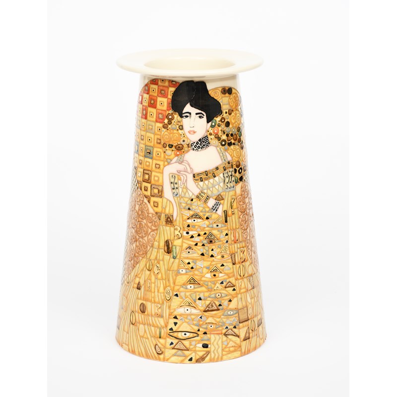 'Adele' a unique large Dennis Chinaworks Conical shape vase designed by Sally Tuffin, dated 2019, decorated by Vanessa Thompson, thrown by Rory Mcleod, tubeline decorated with a portrait of Adele Bloh-Bauer after the portrait painted by Gustav Klimt in 1907, in colours on a cream ground, highlighted with gilt impressed and painted marks, WW16, 34cm. high
