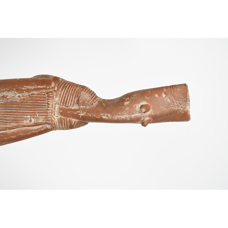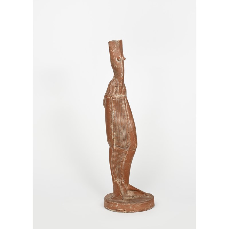 tall standing female figure, earthenware with white slip highlights, incised marks to side of base, 80cm. high