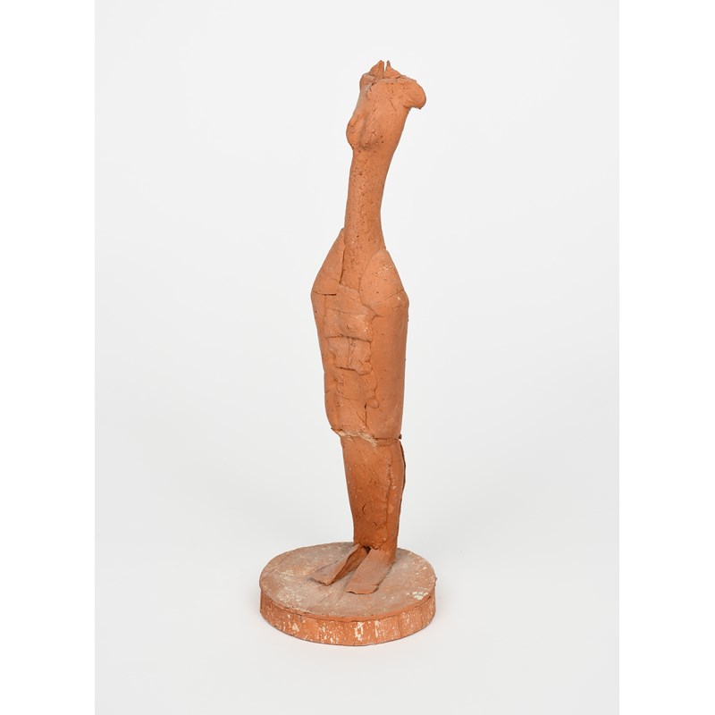 ‡Mo Jupp (1938-2018) Standing figure on circular plinth an earthenware sculpture signed to...