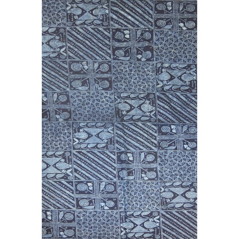 A woven textile in the manner of the Bauhaus, simple brown stripes, a printed textile with Shipibo geometric design, three printed lengths of textiles and another printed linen textile on a blue ground, and four books on Anni Albers Textiles, Helmut Hahn textiles and Ethel Mairet weaves, all unsigned, 116 x 182cm. (10)