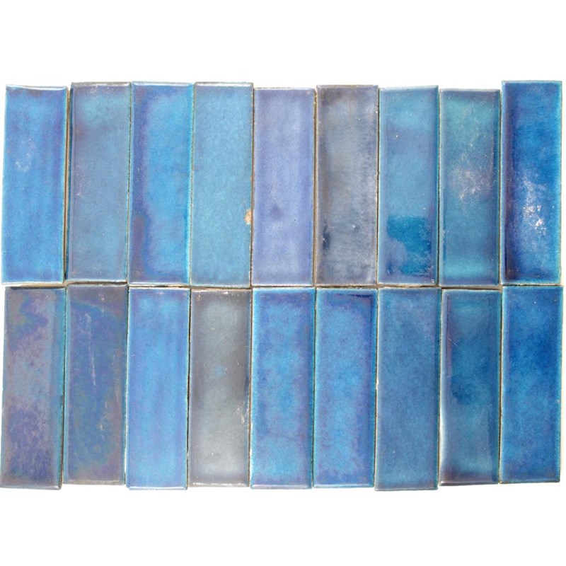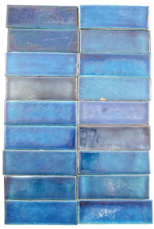 Eighteen William De Morgan spacer tiles, each glazed blue impressed marks 15.5 x 5cm.