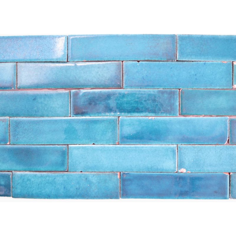 Twenty-one William De Morgan spacer tiles, each covered in a turquoise glaze, and impressed marks 16 x 4cm.