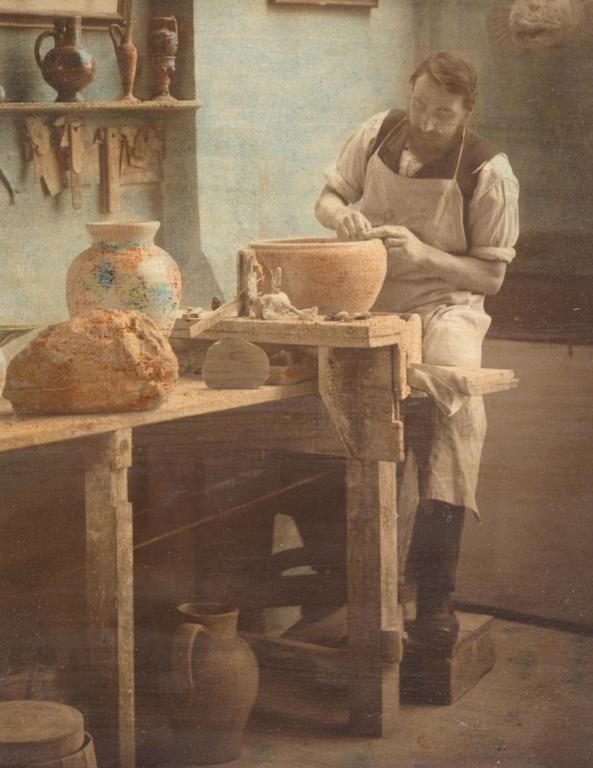 'The Potter' a hand coloured photograph of Walter Fraser Martin