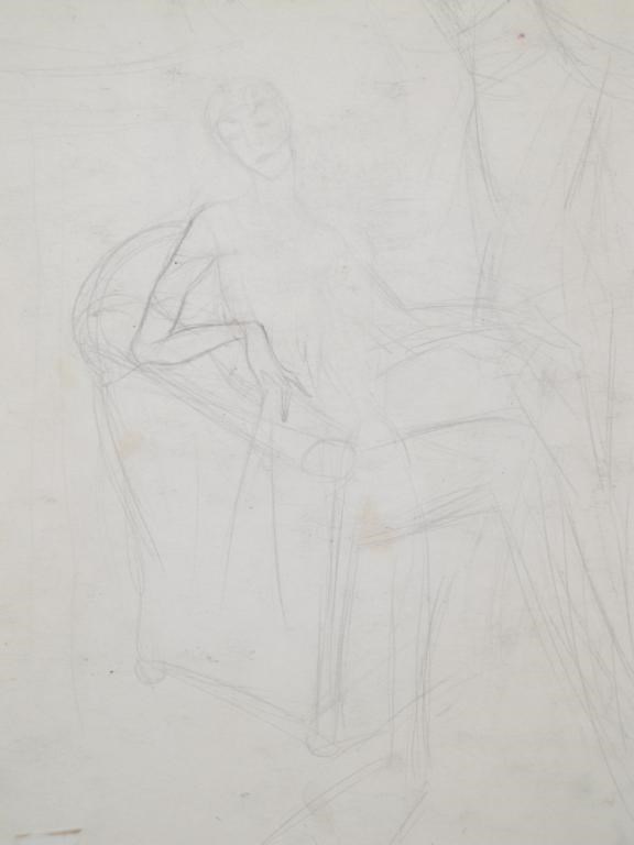 The Night Train, a watercolour on paper of a couple asleep in a first class carriage, mounted unsigned image 30 x 23cm.