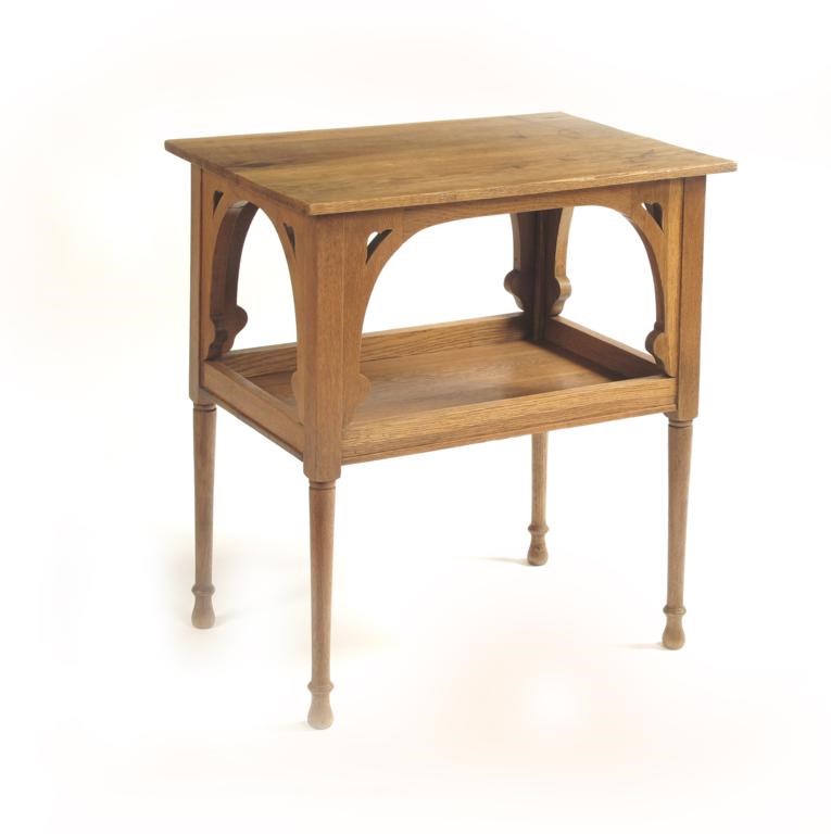 An Arts and Crafts oak side table, on turned legs, top 66 x 45cm.