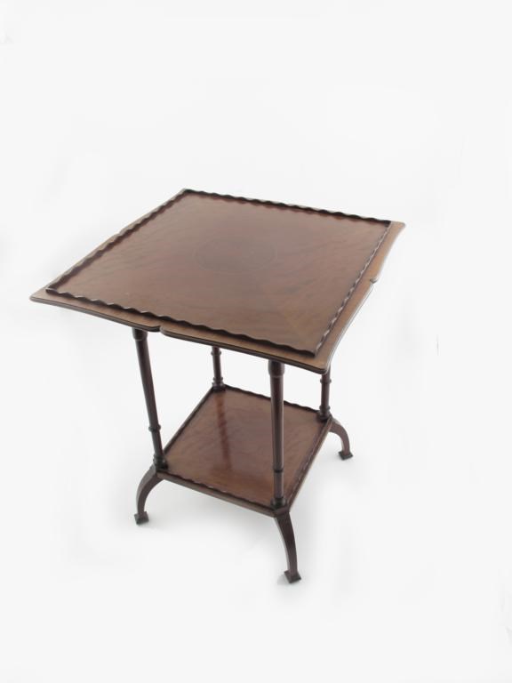 A Morris & Co occasional table, possibly designed by W.A.S Benson, the shaped, square top with gallery rim, on turned legs with flaring feet 63cm. high