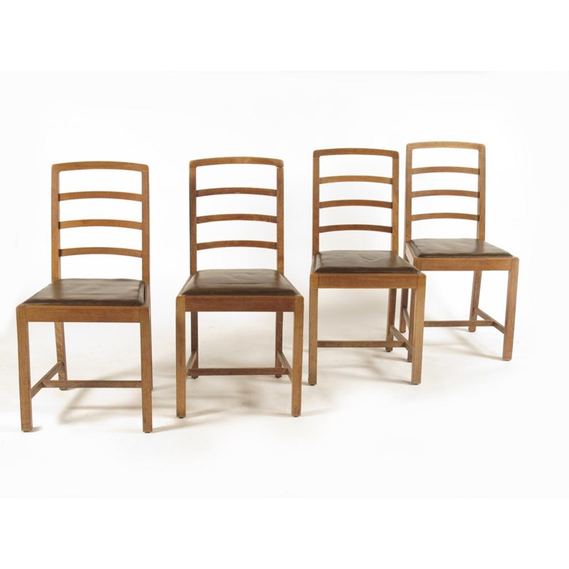 A set of eight Heal's limed oak dining chairs, comprising two carvers and six chairs 89cm. high