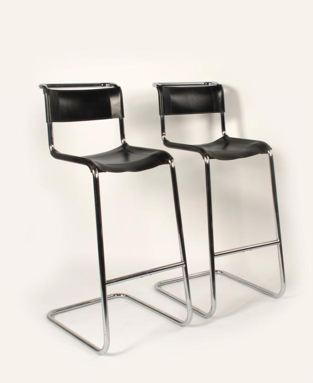 A pair of Thonet chromed metal and leather high stools