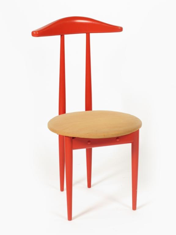 A red painted wood clothes rail/chair