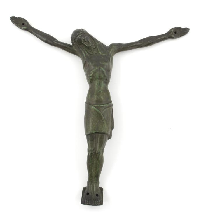 A patinated bronze model of the crucified Christ figure