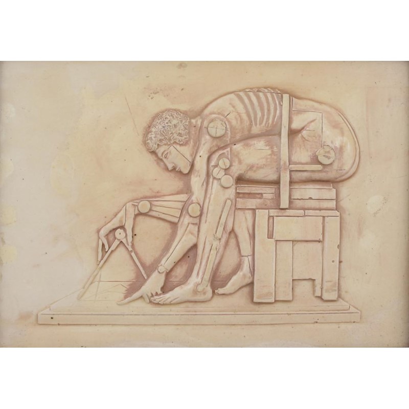 Newton (British Library), a polished plaster plaque, framed incised Eduardo 20.5 x 14.5cm.
