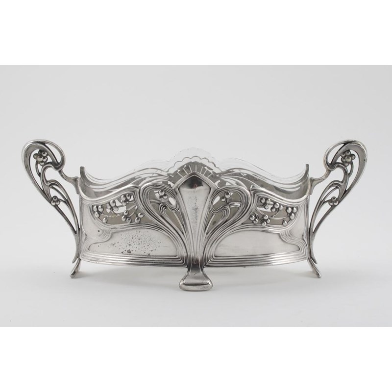 An Art Nouveau W.M.F electroplated pewter and glass centrepiece