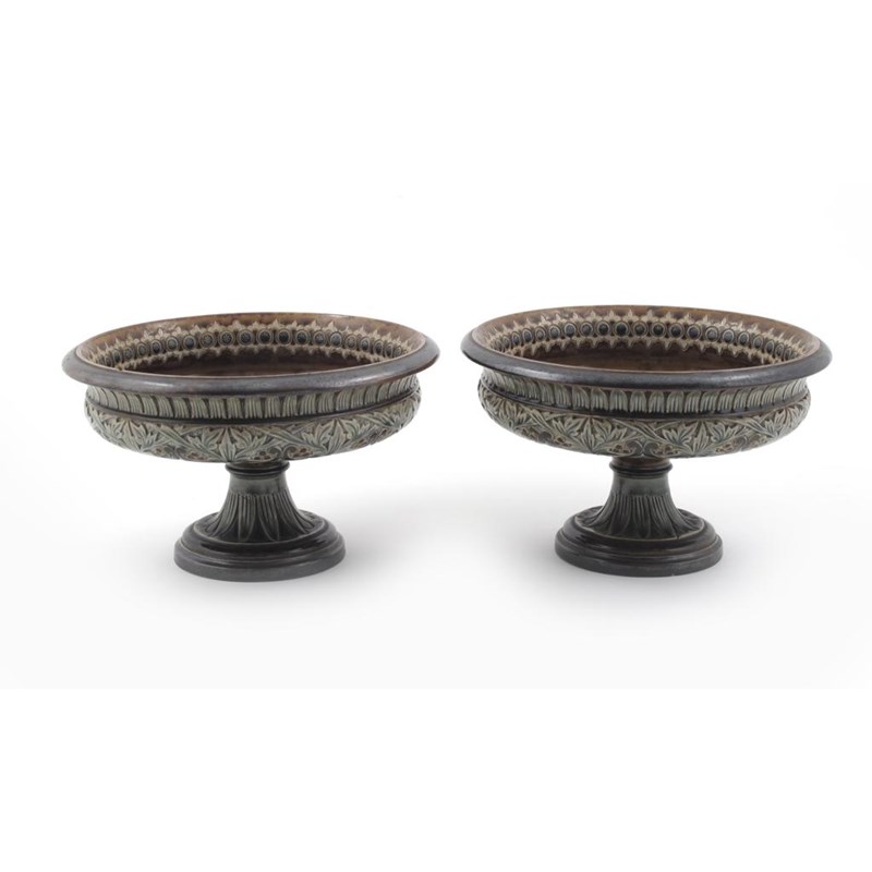 A pair of Doulton Lambeth stoneware tazza by Eliza Simmance