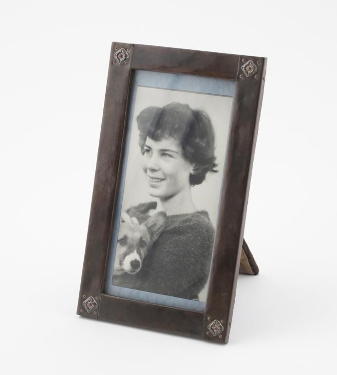 An A E Jones patinated copper photograph frame