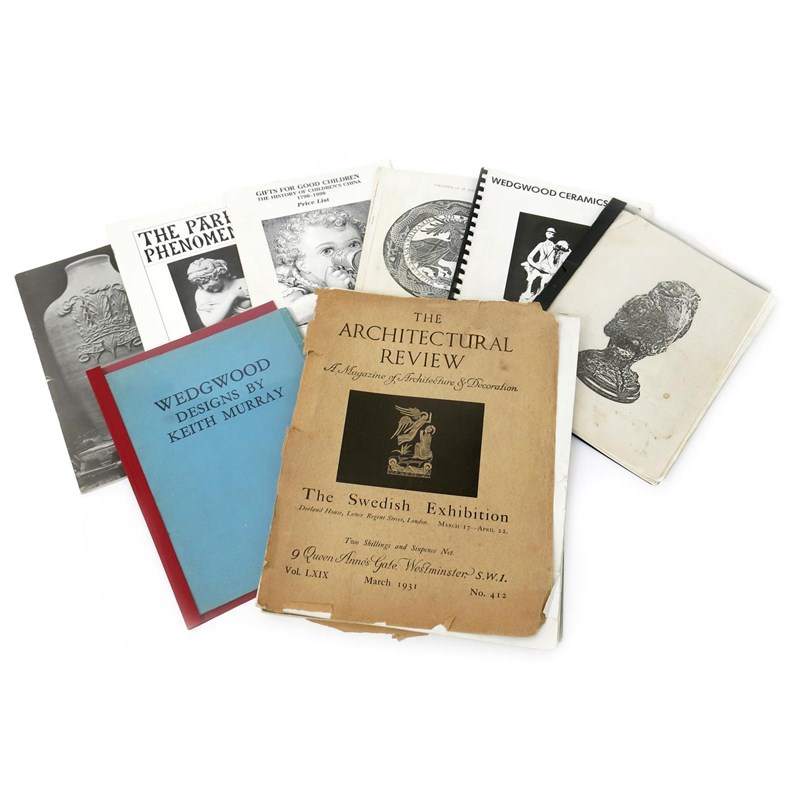 Wedgwood Designs by Keith Murray, a contemporary illustrated catalogue published by Wedgwood, Wedgwood Ceramics 1846-1959, Richard Dennis Gallery, The Swedish Exhibition- Dorland House an Architectural Review, 1931, two Bullers catalogues, 1977, The Martin Brothers Potters, Richard Dennis Gallery, 1978 catalogue with price list and three other Richard Dennis Gallery catalogues, (9)