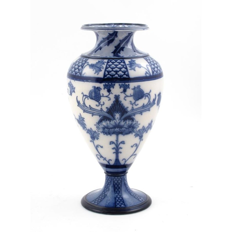 A James Macintyre & Co baluster vase, designed by William Moorcroft, printed in blue with panels and sprays of cornflowers, on a white ground printed factory mark, 30cm. high