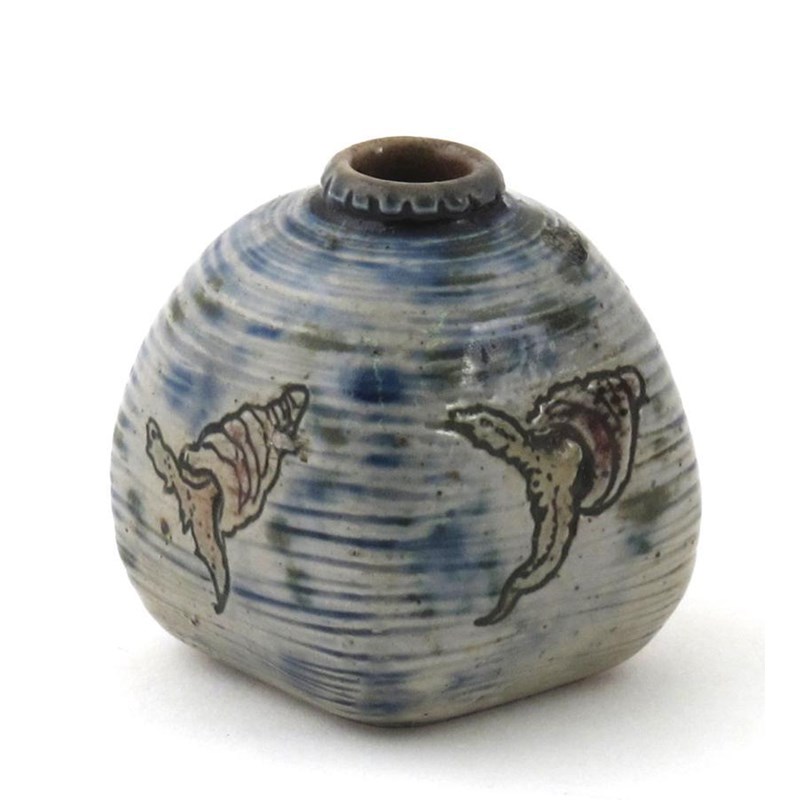 A Martin Brothers stoneware miniature Aquatic vase, square section, each side incised and painted with a jelly fish, in green and ochre on a blue ground incised 3-1913 Martin London & Southall, very minor professional restoration to top rim, 4.5cm. high