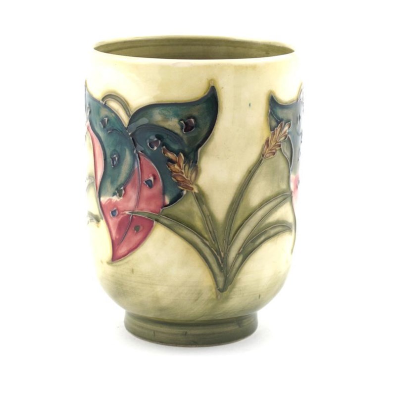 'Arum Lily' a Moorcroft Pottery vase designed by Walter Moorcroft, painted in colours on a pale yellow to green ground applied paper label 13cm. high