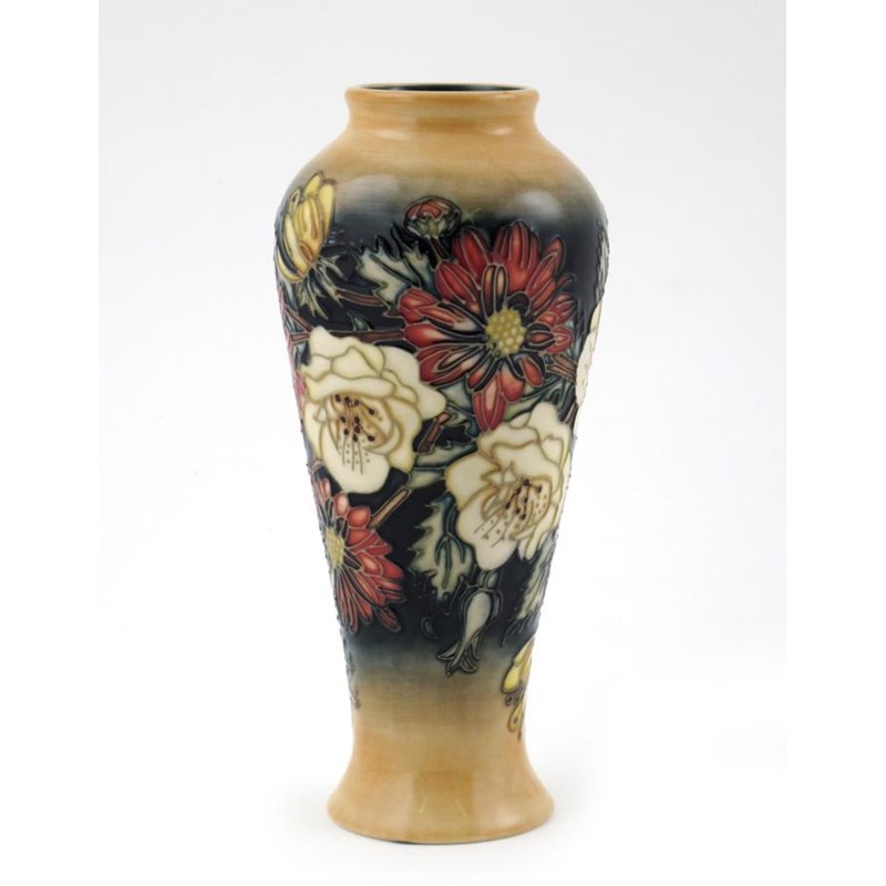 'Victoriana' a Moorcroft Collector's Club vase, designed by Emma Bossons, painted in colours on a sand ground impressed and painted marks 21cm. high
