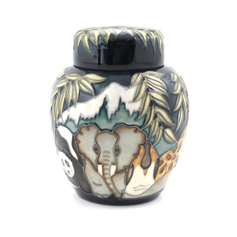 'Noah's Ark' a Moorcroft's Collector's Club ginger jar and cover, designed by Rachel Bishop, painted in colours on a blue/green ground impressed and painted marks 15cm. high