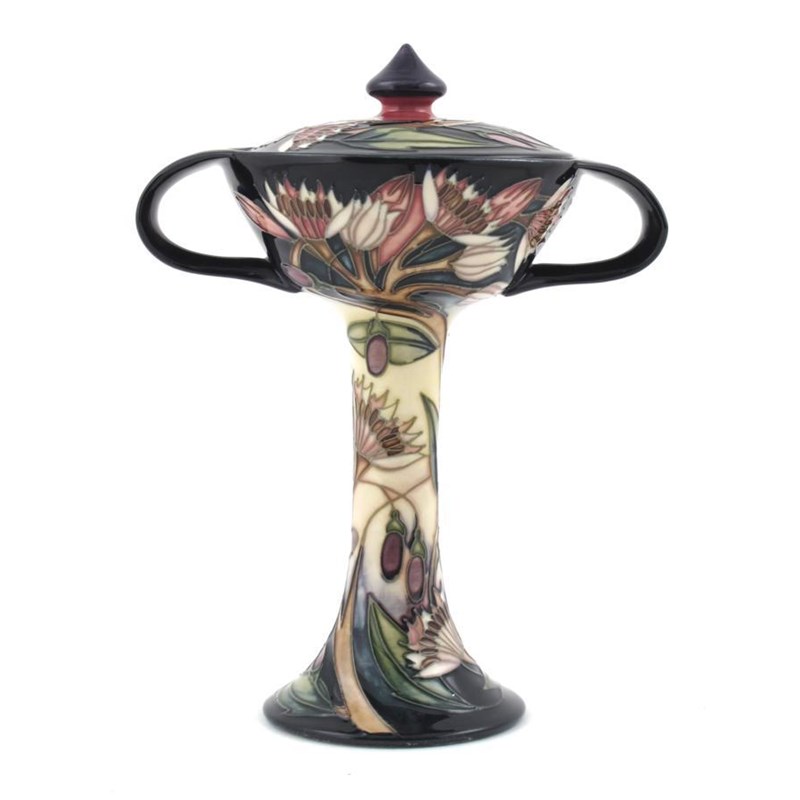 'Symphony' a Moorcroft Collector's Club bonbonniere and cover, designed by Emma Bossons, painted in colours impressed and painted marks 21cm. high