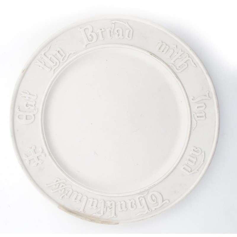 An encaustic bread plate designed by A W N Pugin, the rim inscribed unmarked 32.5cm. diam.