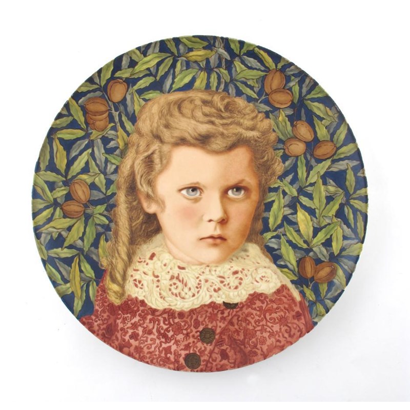 'Portrait of Russell Nadin - three and a half years' a portrait charger by M Nadin, dated 1885 on Minton's blank, painted in colours, impressed and painted marks 41cm. diam.