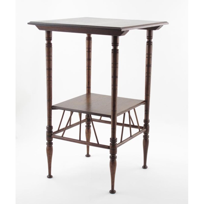 An oak occasional table, originally designed by E W Godwin and possibly retailed by Liberty & Co, square section, on turned legs unsigned 67cm. high