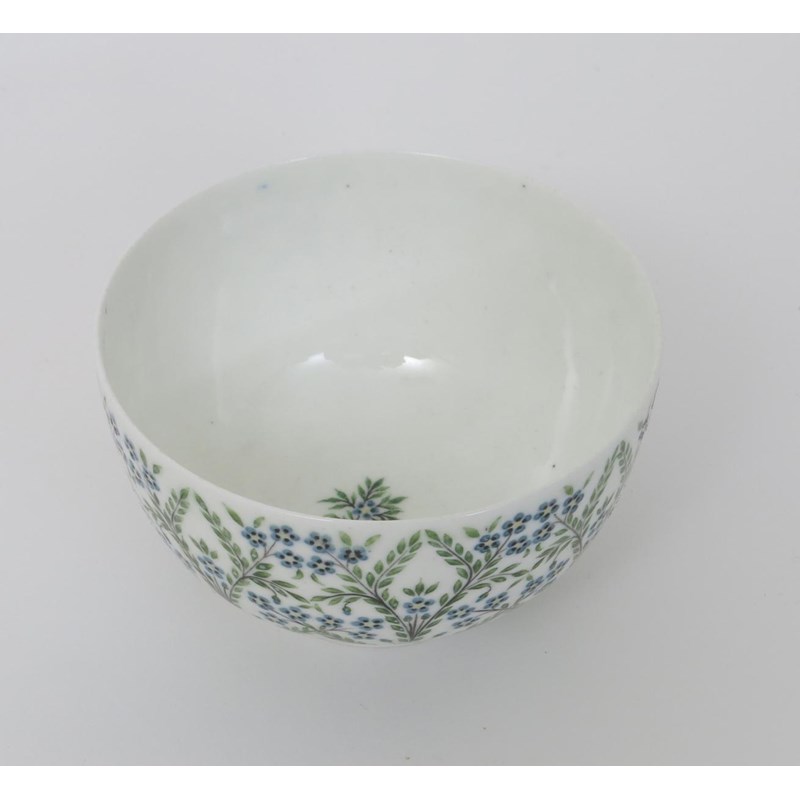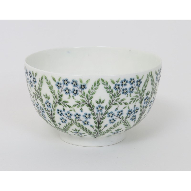 A Wedgwood Pottery bowl by Louise Lessore, pattern no.471, painted with sprays of forget me not flowers, in colours on a white ground, the interior with central flower spray printed factory mark, painted artist monogram, 10cm. diam.