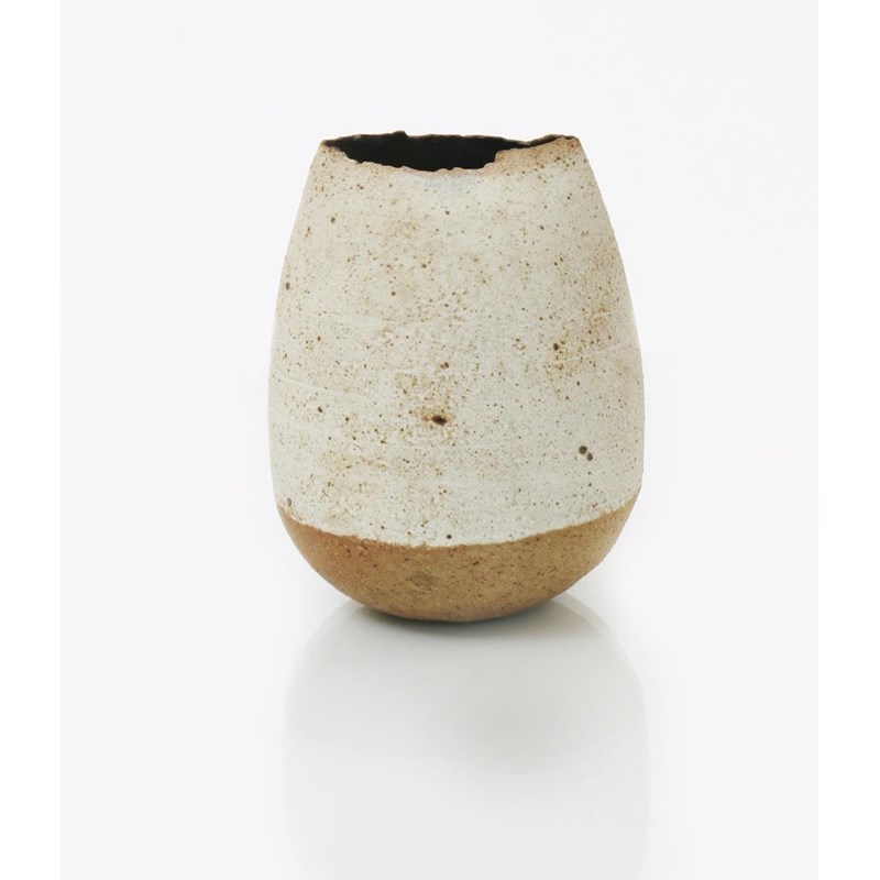a stoneware vase, sack form with uneven rim, the exterior glazed to the foot with a matt buff speckled glaze, and a collection of studio pottery including Michael Casson, Yo Thom, Clive Bowen and Natasha Daintry impressed seal mark, 11cm. high (a lot)