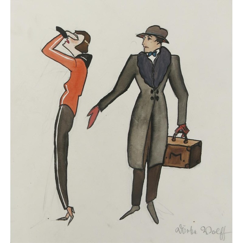 ‡Dorte Clara Dodo Burgner (1907-1998) Bad News pen and ink and watercolour on paper
