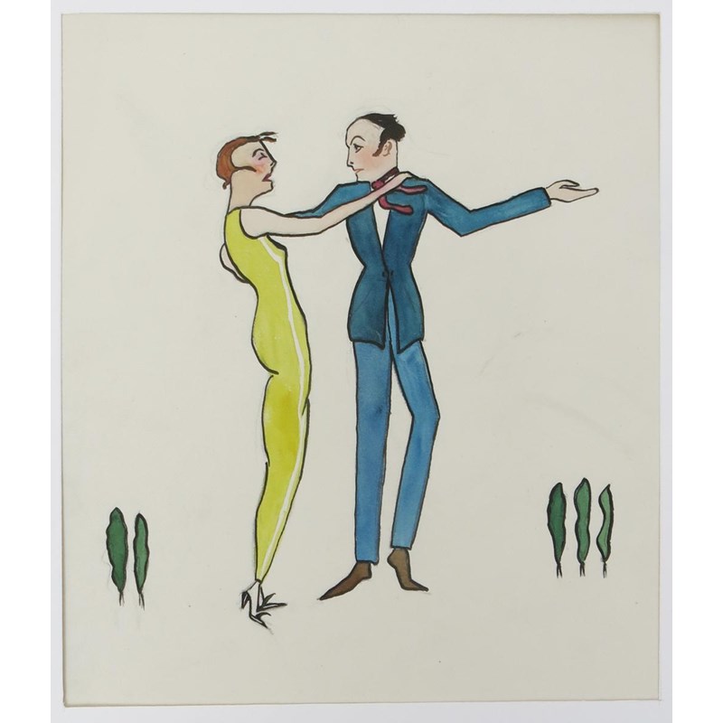 ‡Dorte Clara Dodo Burgner (1907-1998) Dancing couple and trees pen and ink and watercolour on paper