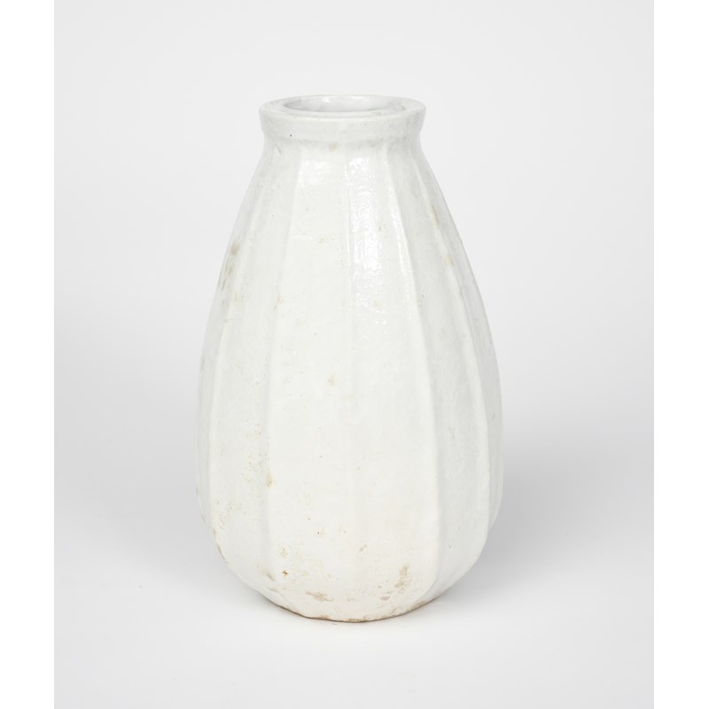 A large Martin Brothers stoneware Gourd vase by Robert Wallace Martin, ribbed form with collar rim, covered in a textured white glaze incised R W Martin & Bros, London & Southall, 26.5cm. high