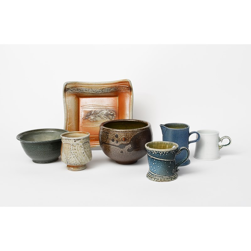 a salt-glaze stoneware bowl, and a small collection of salt-glaze stoneware including a mug by Walter Keeler, a pouring vessel by Ruthanne Tudball and a jug dated 1977 by Steve Harrison,