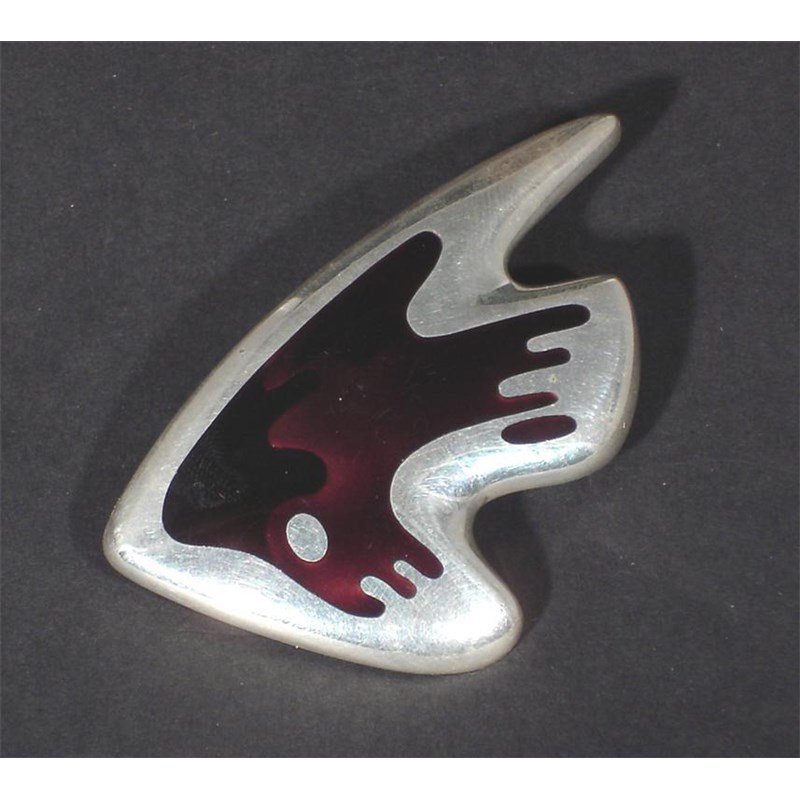 A Georg Jensen silver and enamel brooch model no.307, designed by Henning Koppel, aubergine enamel stamped marks 6cm. wide