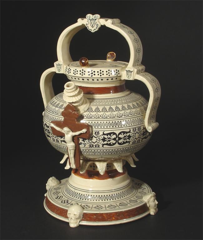 A Choisy Le Roi, H Boulanger & Cie Henri-Deux ewer with double hinged cover impressed, printed and painted marks, minor losses 24cm. high