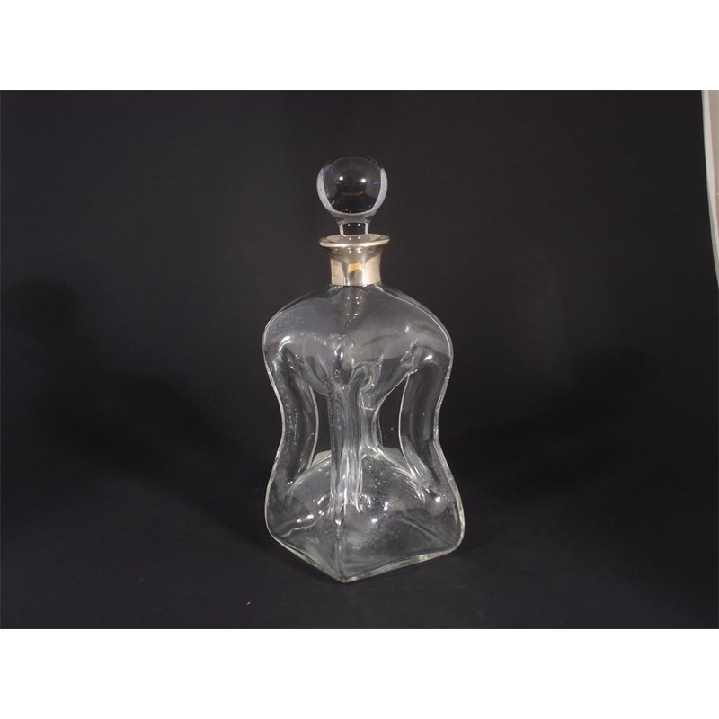 An Asprey & Co silver mounted glass decanter pinched, waisted glass body, with ball stopper, stamped marks London 1962 29cm. high