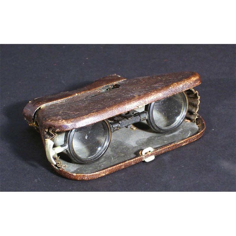 A pair of Asprey opera glasses in hinged purse case impressed Asprey London 11cm. wide